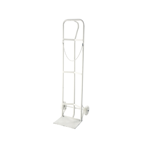 OXYGEN TROLLEY JUMBO. Tubular frame structure pull & push type with bottom plate, pre treated and epoxy powder coated with front lockable chain with 125mm wheels 2 piece.